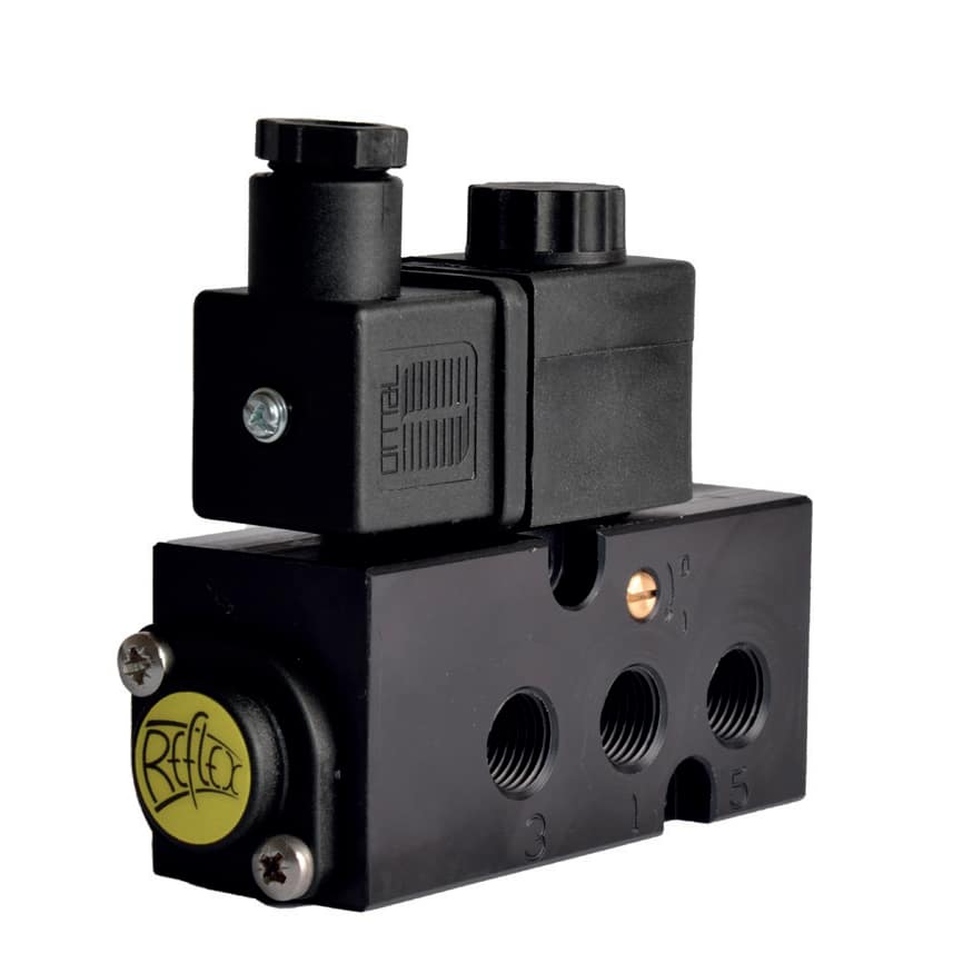Solenoid valve designed for direct mounting onto 1/4 turn pneumatically operated valve actuators meeting ‘NAMUR’ standard fixing dimensions.